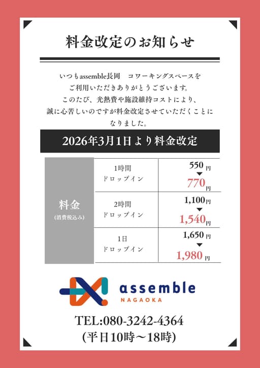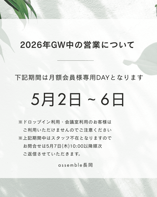 ご利用をお考えの方はassemble長岡までお問合せください。