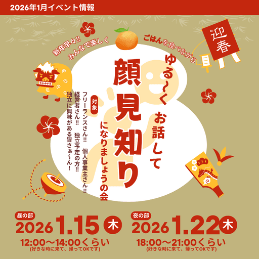 【1月イベント情報】ゆる〜く話して、気軽に顔見知りになりましょう(開催日:1/15・1/22)