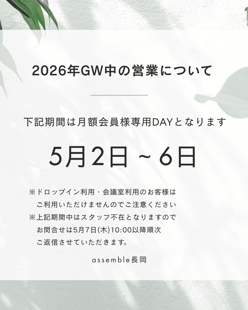 ゴールデンウィーク期間中の営業についてご案内いたします。