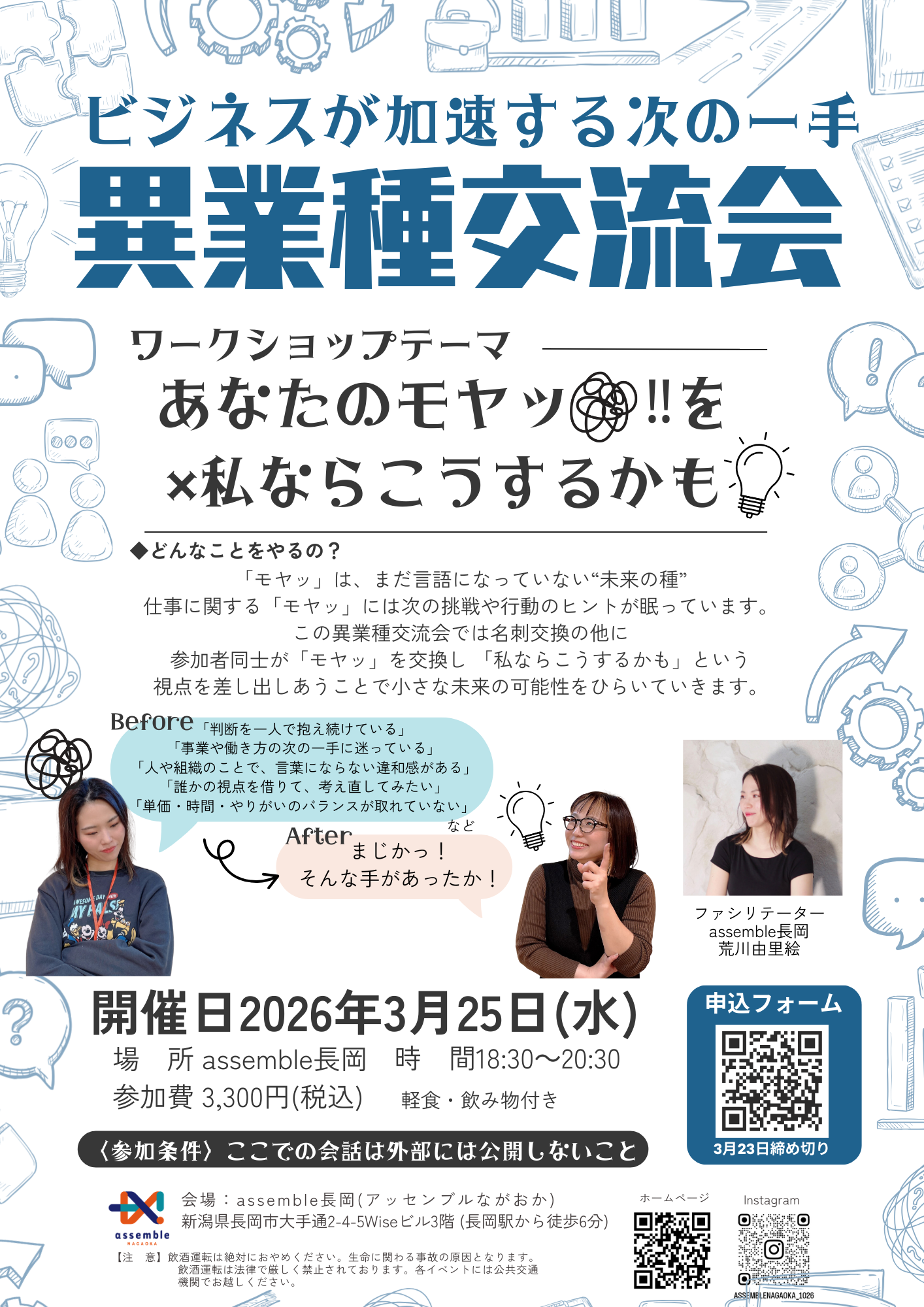 ・お預かりした個人情報はプライバシーポリシーに基づいて管理いたします(https://assemble-nagaoka.atomica.co.jp/privacy-policy)