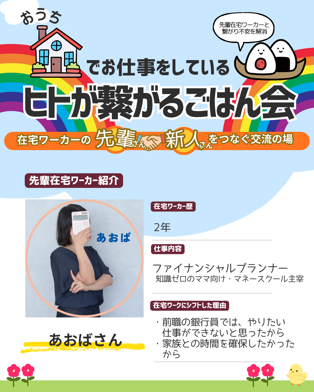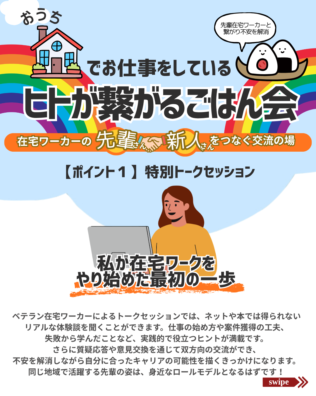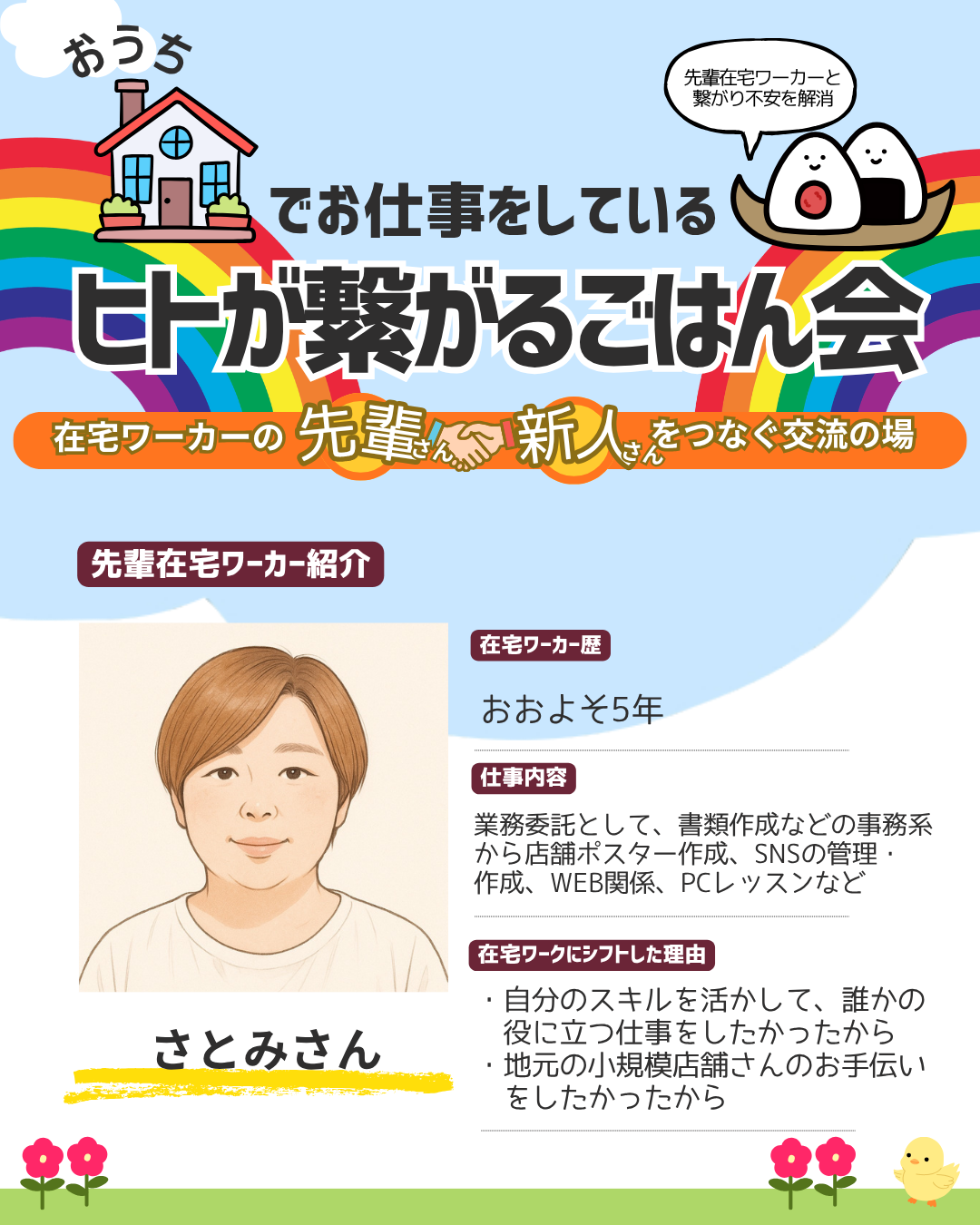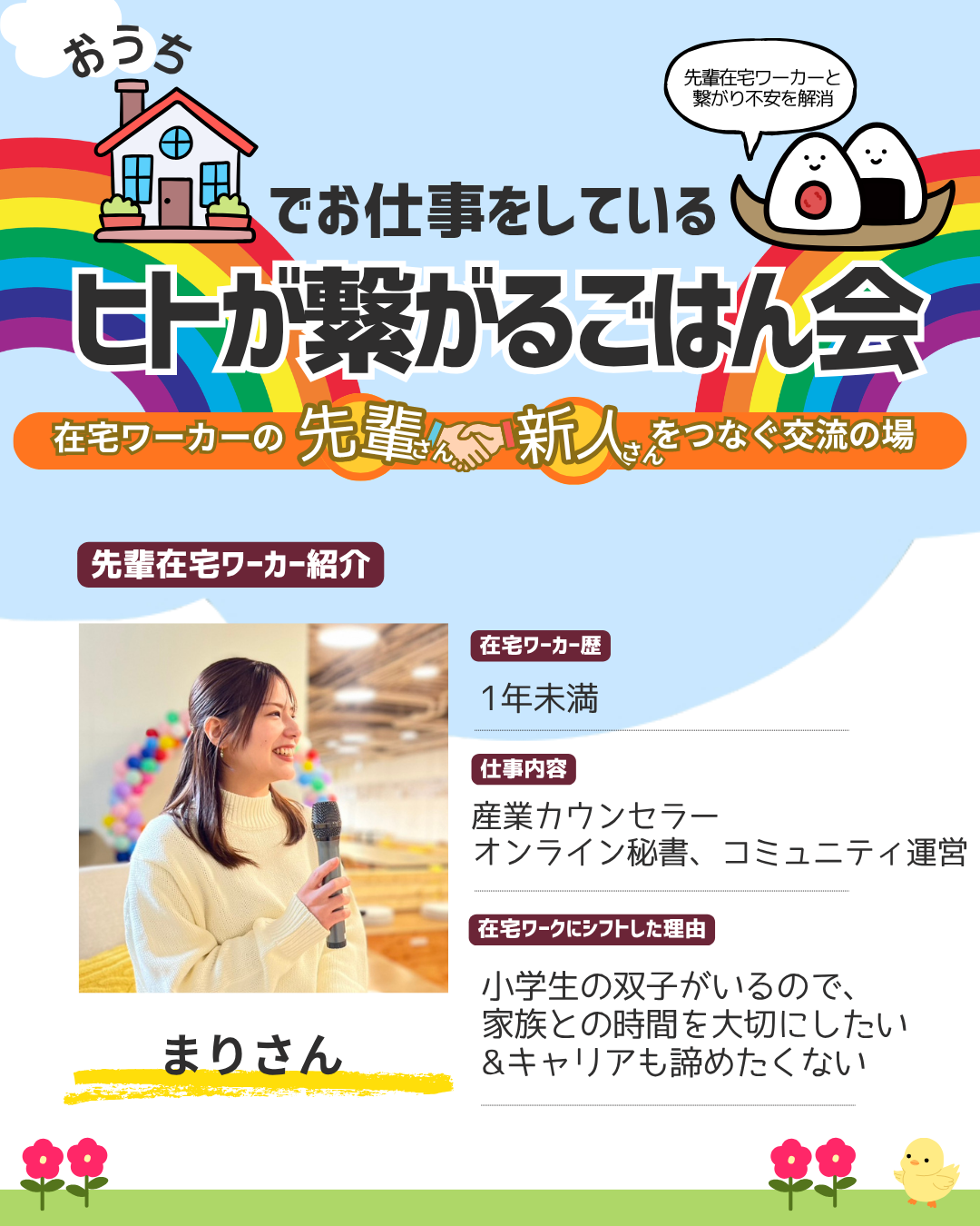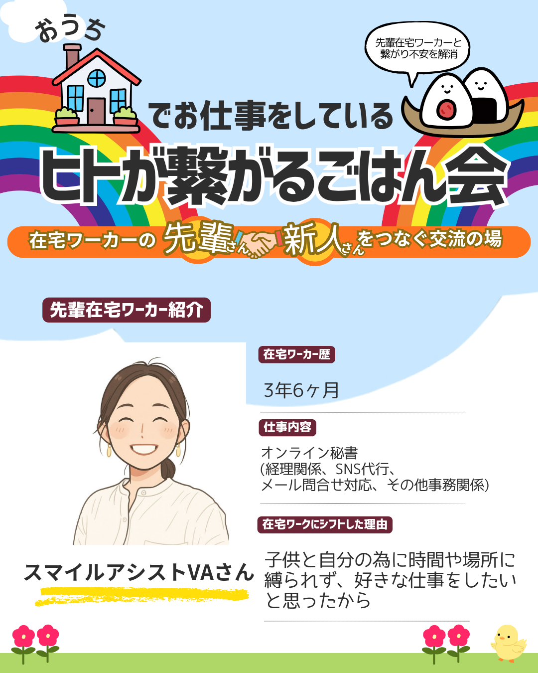 今回の交流会では、実際に在宅で働く先輩ワーカーさんたちが、リアルな体験談をシェアしてくれます✨