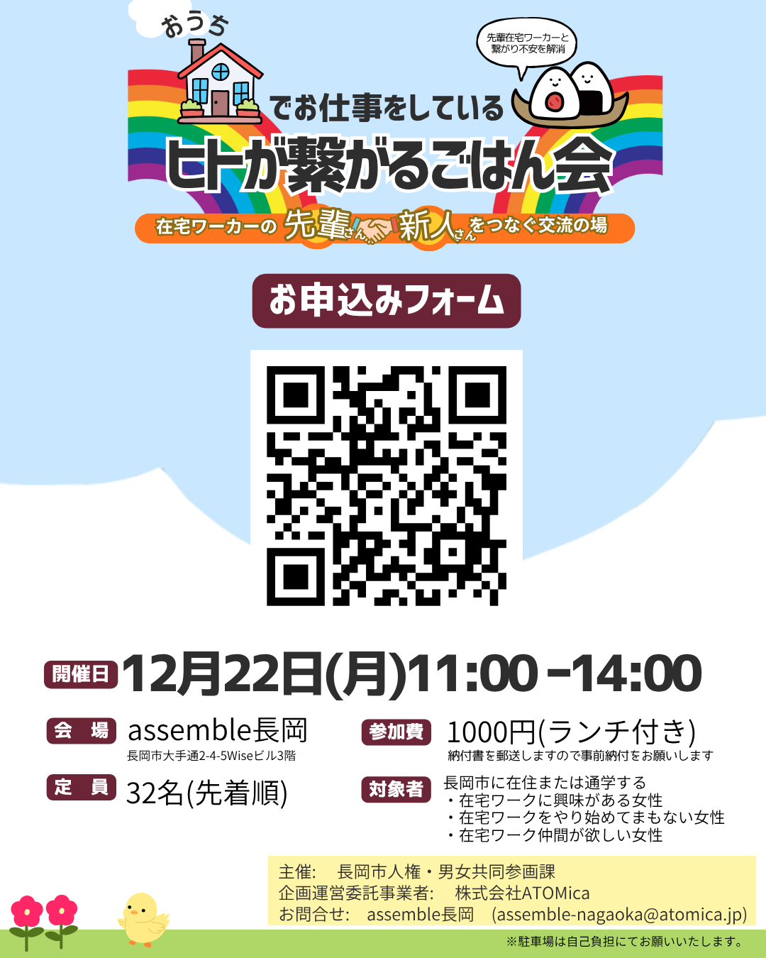 お問合せ: assemble長岡 (assemble-nagaoka@atomica.jp)