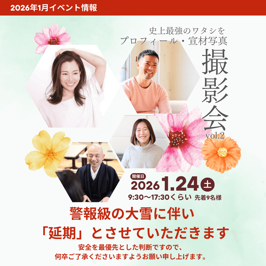 【大雪に伴うイベント延期連絡】プロフィール写真撮影会(開催日:1月24日)