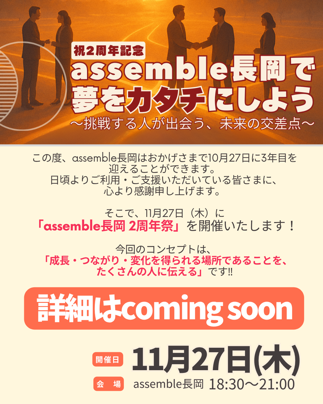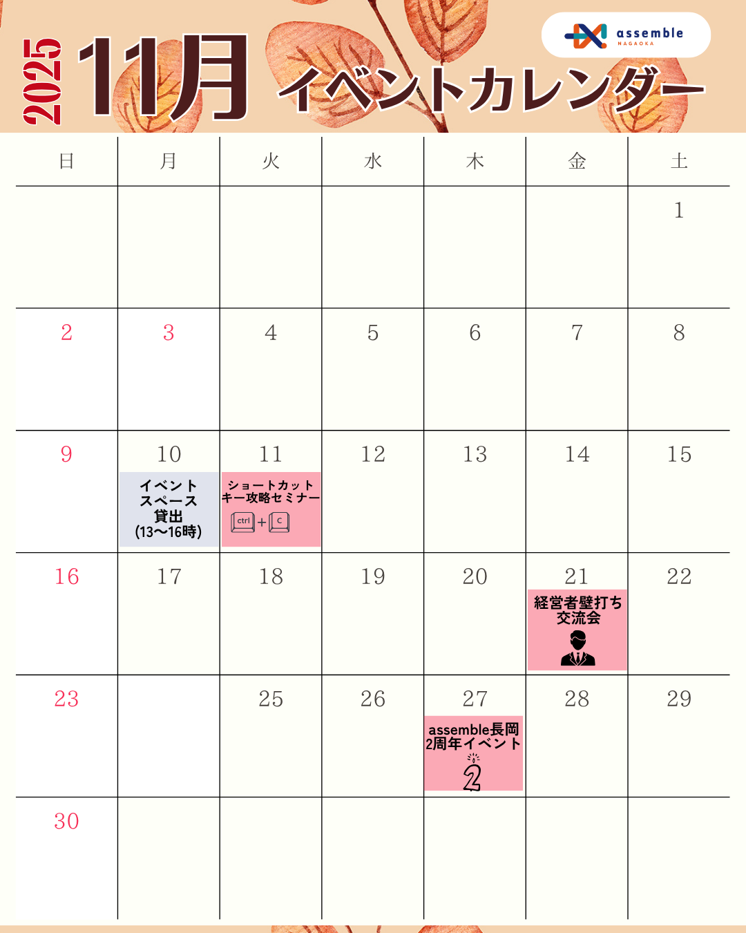 assemble長岡11月のご利用案内・イベント情報等をお知らせいたします✨