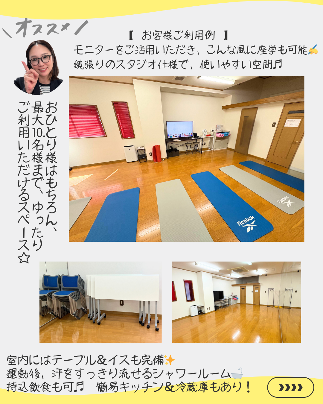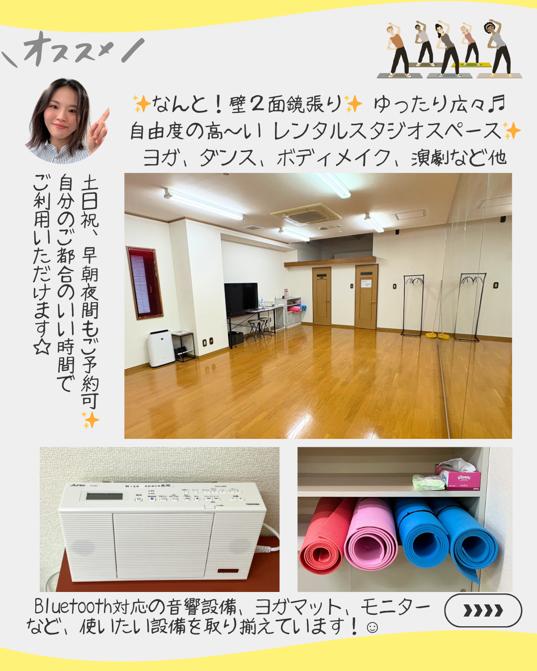 ヨガ、ピラティス、ダンス、演劇など…使い方は無限大∞