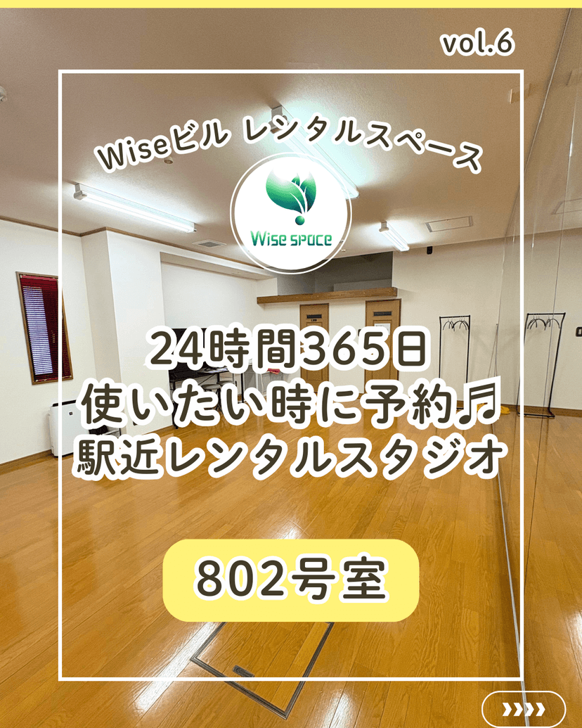 ✨壁面鏡張り2面!シャワー&トイレ完備レンタルスタジオ【 Wise space 802号室 】✨