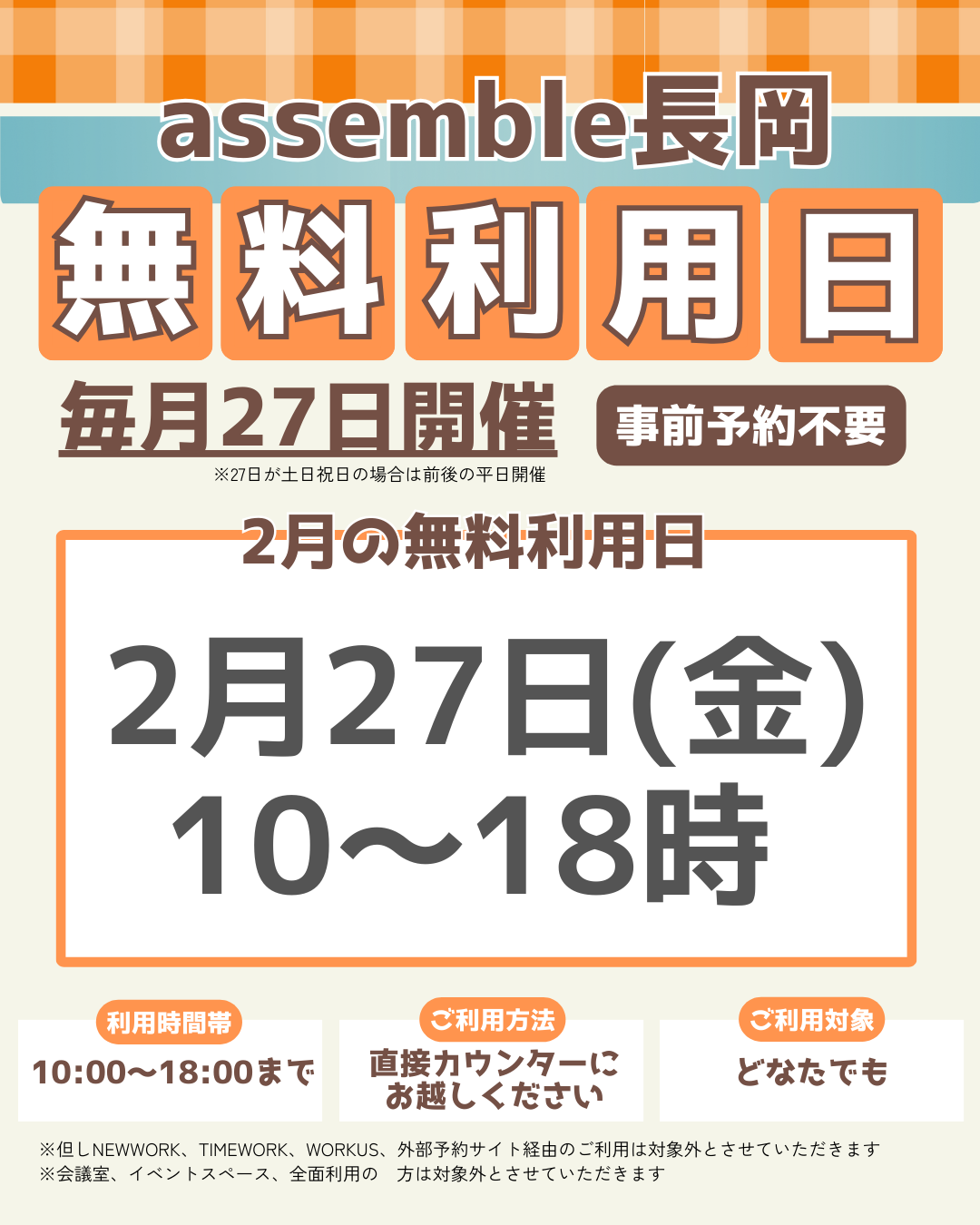 (イベント開催等に伴うassemble長岡のご利用可能日についてはコチラ)