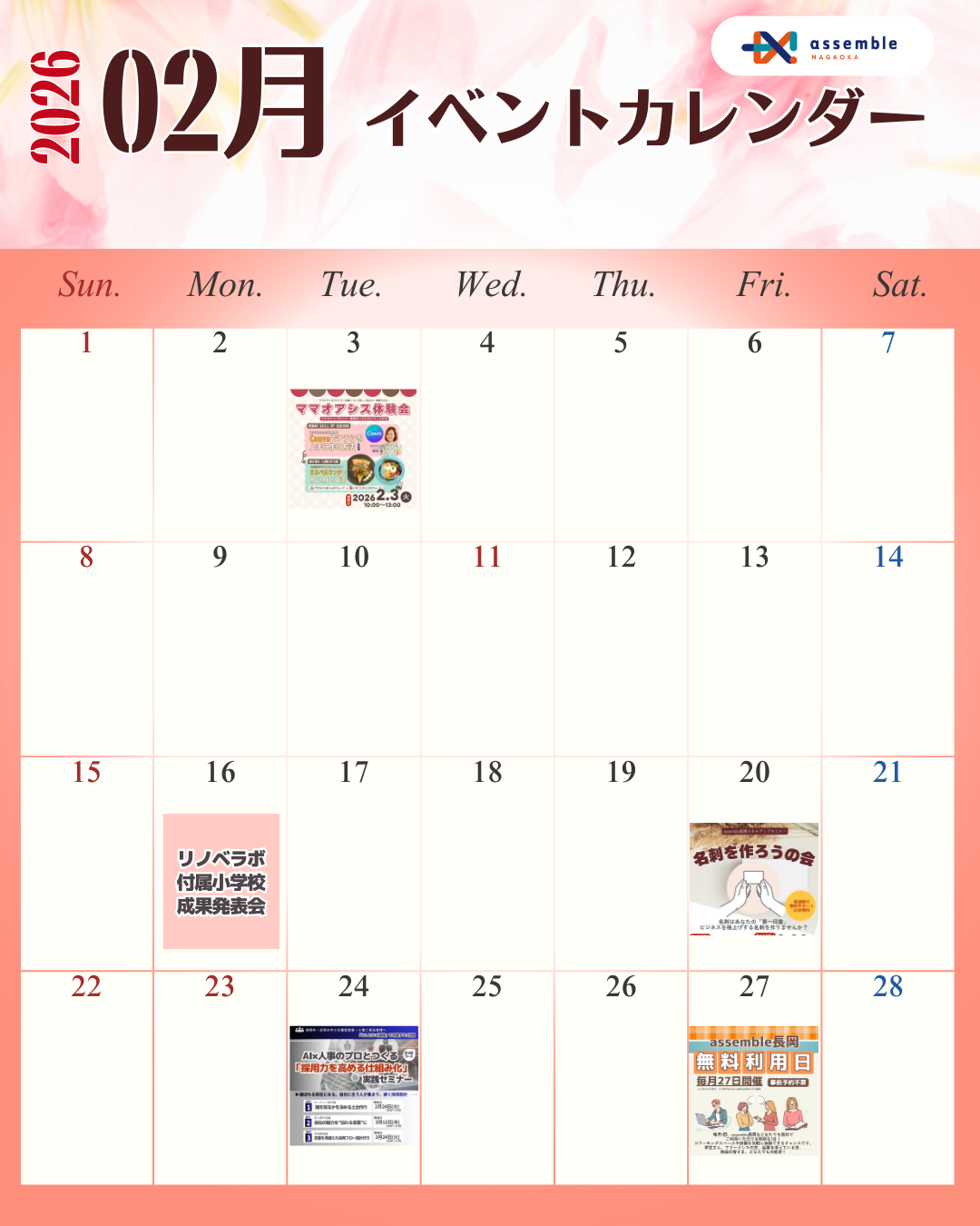 assemble長岡2月のご利用案内・イベント情報等をお知らせいたします✨