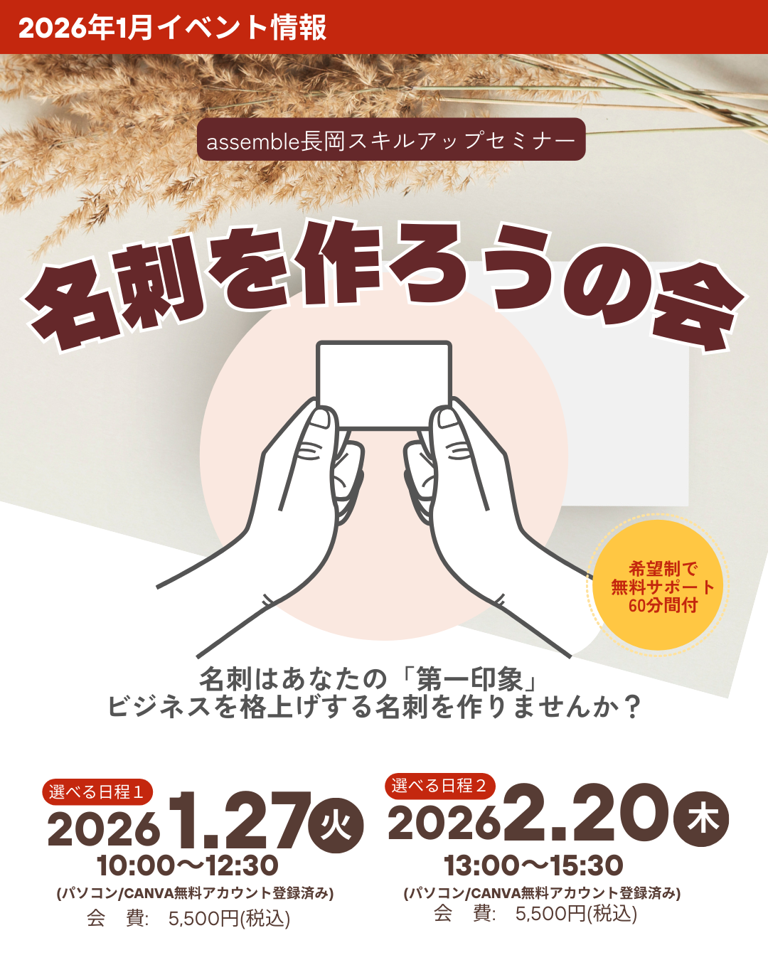 【1・2月イベント情報】名刺を作ろう会(開催日:1/27・2/20)