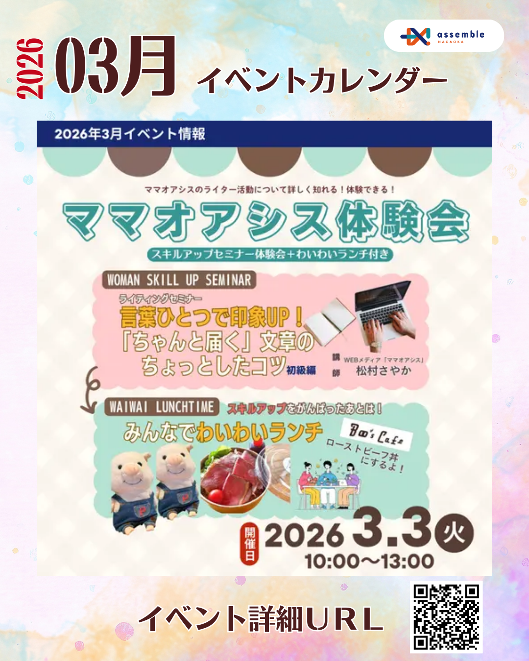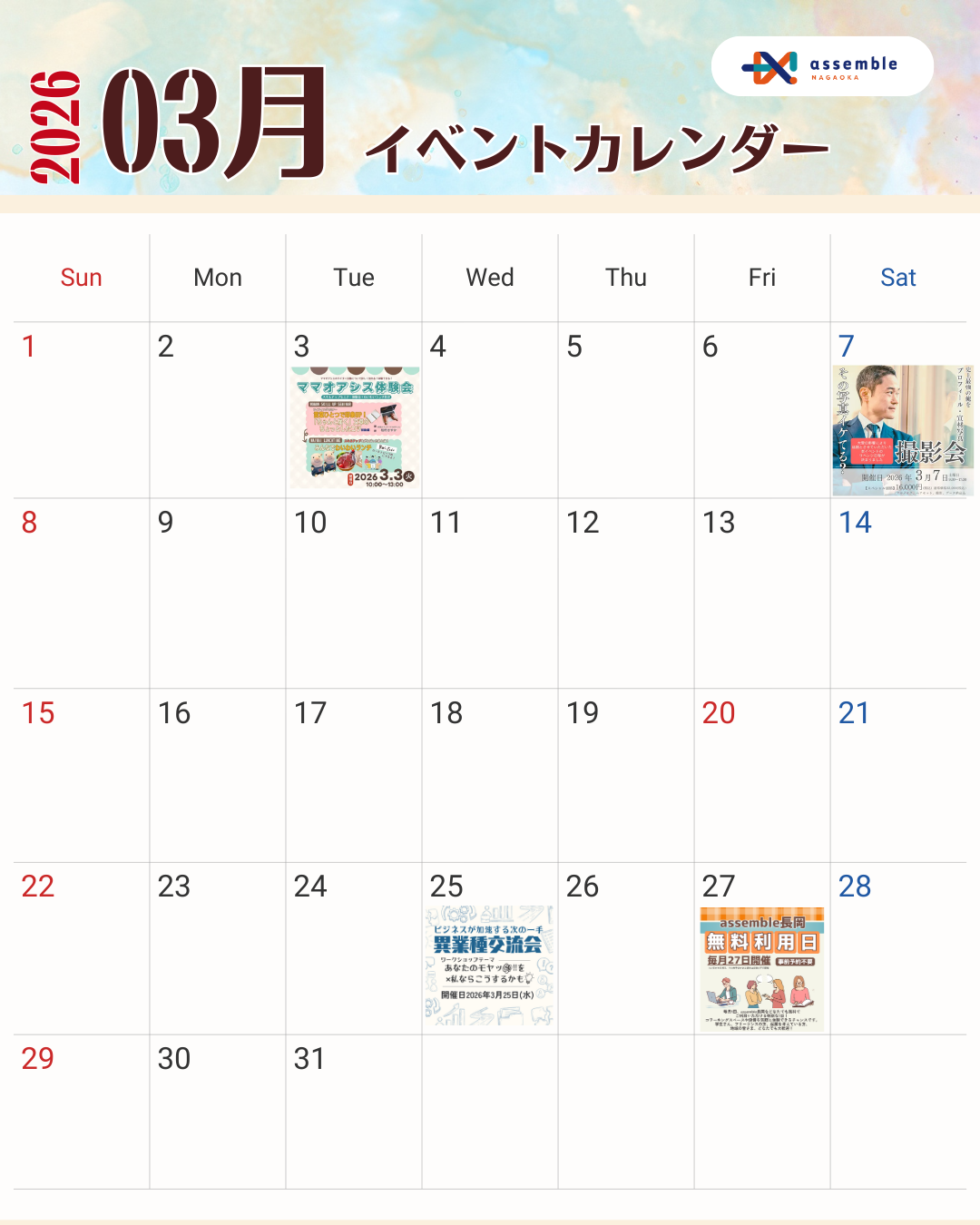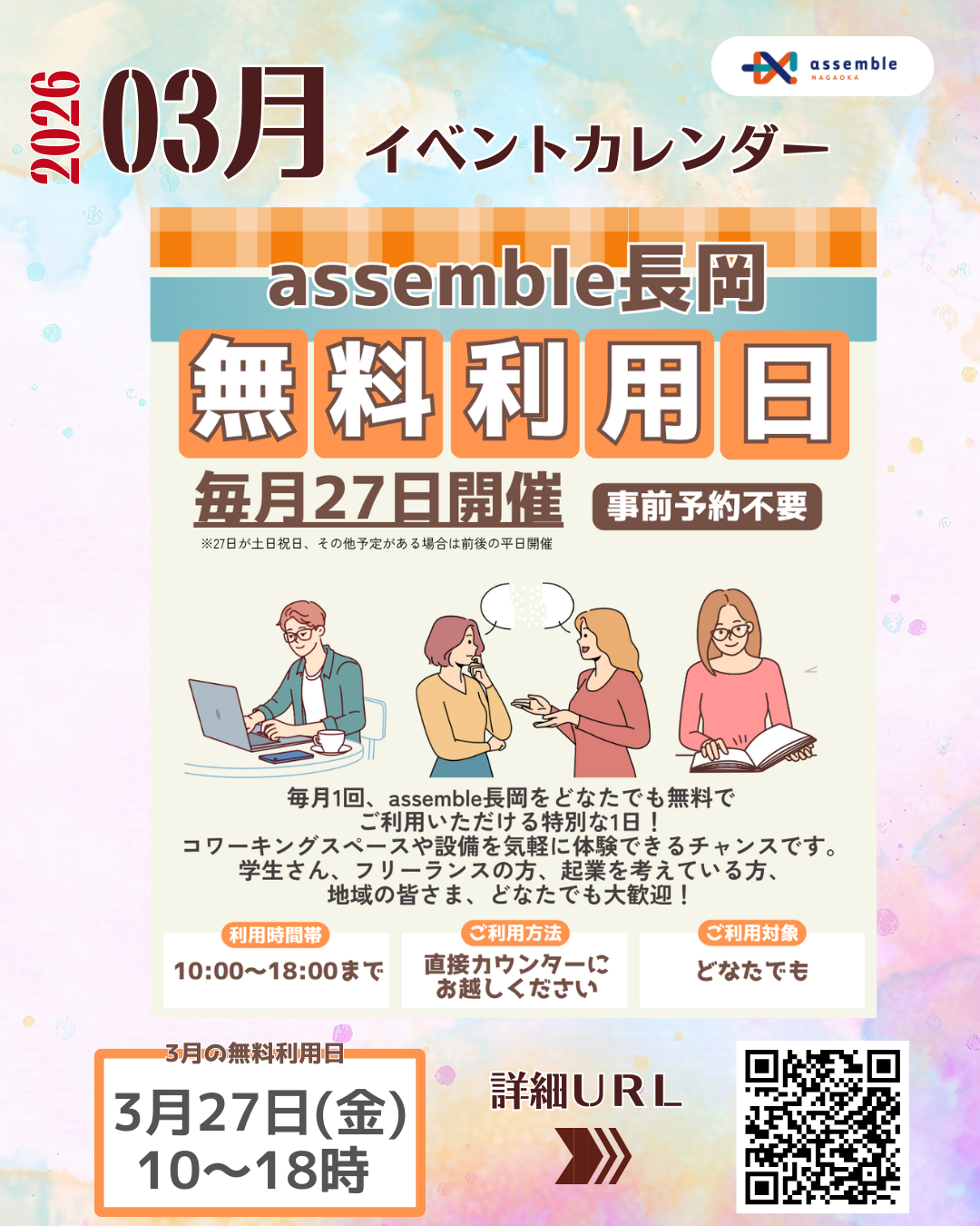 assemble長岡3月のご利用案内・イベント情報等をお知らせいたします✨